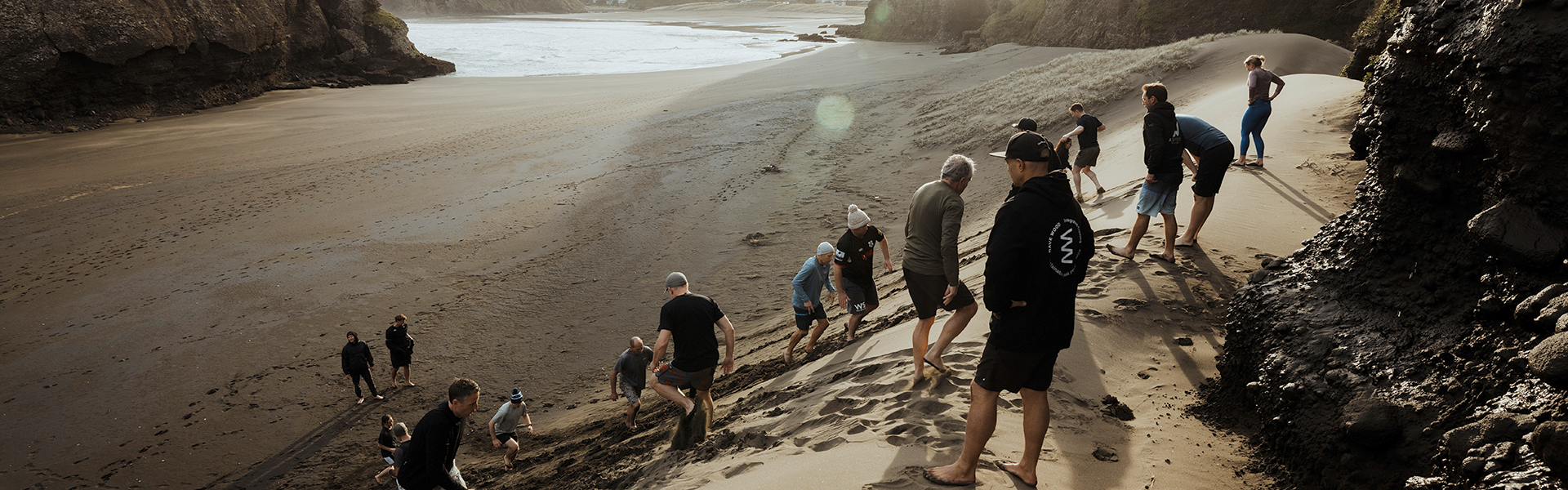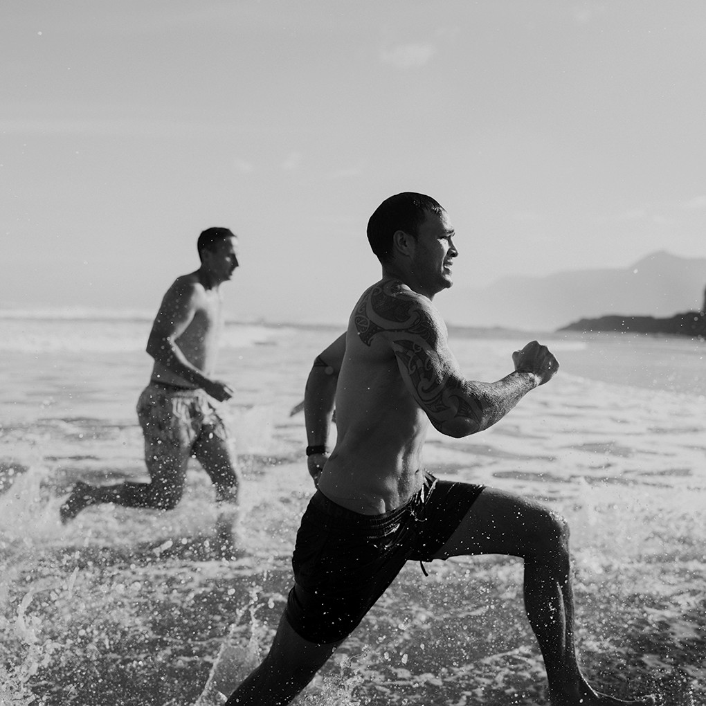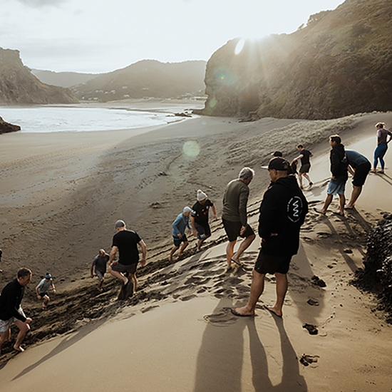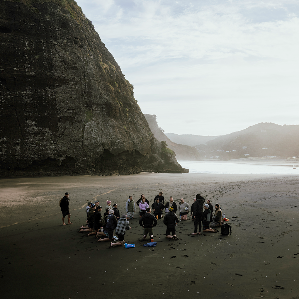 The weekend begins as the sun rises over the Waitākere Ranges. Barefoot, quiet, and uncertain, participants gather on the beach unsure of what lies ahead. There’s no better place to start than the cold Tasman wind, the hiss of surf, and the first physical session set the tone, it’s about stress exposure. Participants are pushed physically and mentally, but within their own capacity, and shown how to meet it with tools that build control and adaptability.