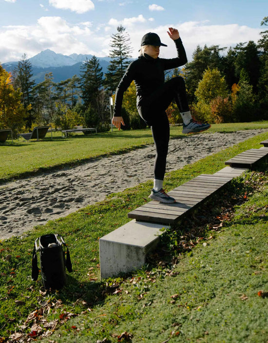 During the pre-season, I spend a lot of time biking and running to build my endurance, and then taper these sessions in winter and use them more for recovery. Whenever possible, I also like to climb and surf. These activities are great for balance, core, and upper body strength, and there is no better way of being mindful and present than spending time in the ocean.