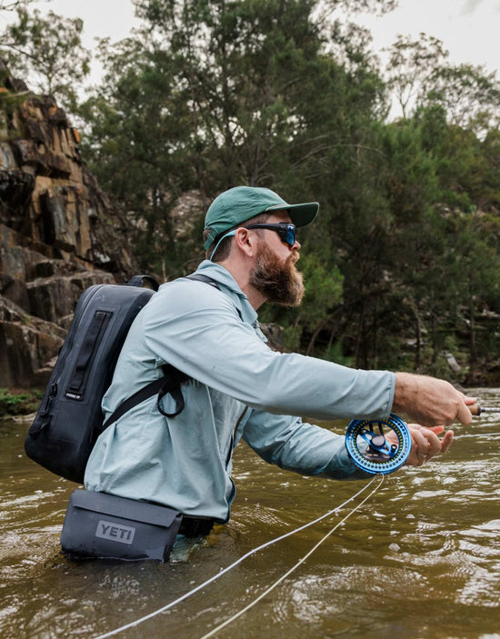 On a day like this where I have my Panga® Backpack (carrying my food, water bottle, and camera), the Sidekick Dry® 1L Gear Case is the perfect complement. It fits my headlamp (essential for the lowlight hours), three Murray cod flies, pliers, leader, and my phone and keys. I particularly like how it easily attaches to the backpack when wading deeper, but can easily become a hip pack with the Sideclick™ Strap."