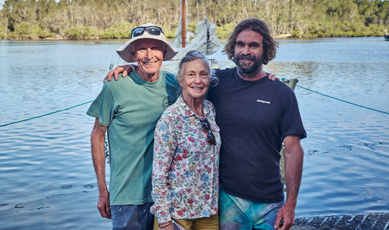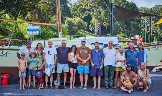 There’s not a dry eye on the boat ramp as Paul blesses the boat in a traditional Polynesian style by pouring coconut milk over the bow. He thanks all his family and friends for helping him get Young Woodley 2 into the sea, and his eyes meet Heath's. They’re both smiling but with tears rolling down their cheeks. Heath holds his father’s stare and I can see his mind flick through the beautiful memories he has with him and how proud he is of him. Heath sees how much he carries his dad’s soul in his own life, through his creativity and his relationship with the sea. Their father and son bond is about as pure as it gets. And one Paul, Heath, or any of the Joskes or their children will never forget as they sail around on Young Woodleigh 2.