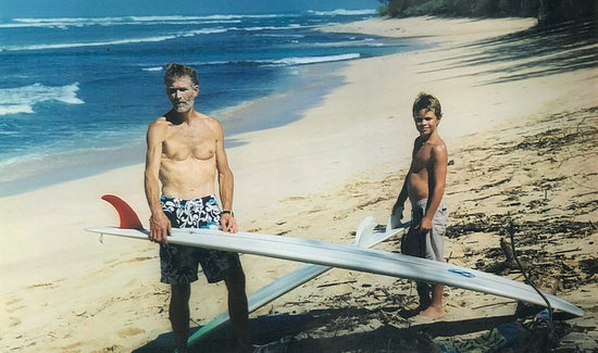 In the years that followed, Paul bought a van for his surf tribe, keeping all the gear in the back for family surfs before school. On the weekends, they would all chase waves along the coast, camping and sleeping in the van. The kids all competed in the local competitions and surfed shortboards, Mals. Paul and a 7-year-old Heath even won a few tandem events in the mid-90s. All the kids were incredible surfers and blessed to have parents who encouraged the saltwater lifestyle.