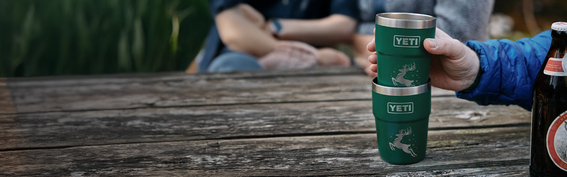 For base camp or that place you kick back before heading out again, use any size of YETI Mugs, the Rambler® Lowball, Rambler® 10 oz Wine Tumbler, coolers, or the Colster Can Insulator.